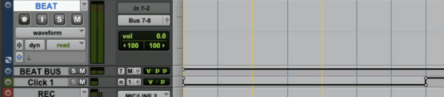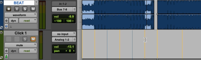 While tracking you will often come across sections of the beat where the drums drop out. These breakdown sections can make it hard for the artist to keep up with the tempo. Always keep a Click track in your template for these situations. I keep mine MUTED with the mute automation lane pulled up so I can quickly automate the click ON for these sections and OFF for the rest of the song.