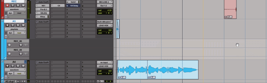 Toggling the Link Timeline / Edit Selection preference is a great technique to speed up the process and free your cursor to make edits while cutting vocals. While link timeline/ edit selection is enabled the play head will follow the cursor anywhere you click in the session. If you disable this feature you can cut the artist from the same start point while editing other parts of the song.